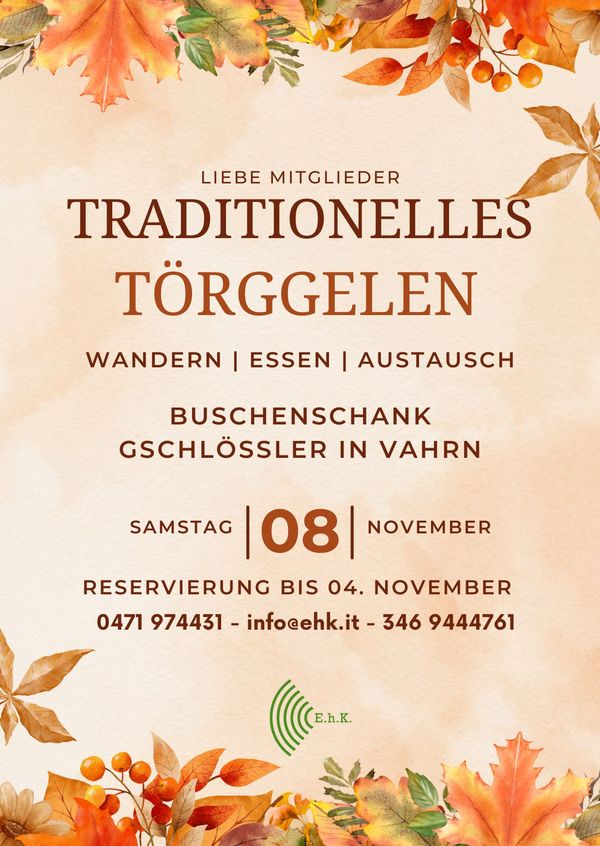 auch heuer möchten wir uns zu einem gemeinsamen Törggelen treffen und freuen uns schon auf ein gemütliches Beisammensein.